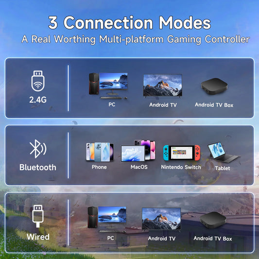 Wireless PC Controller, Bluetooth Controller Compatible with PC, Android/Ios, Switch/Steam, Starfield, with Hall Joystick Trigger, RGB Lighting Effect, White